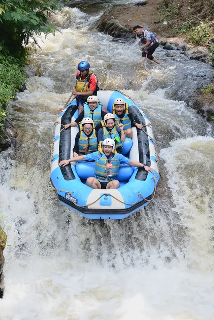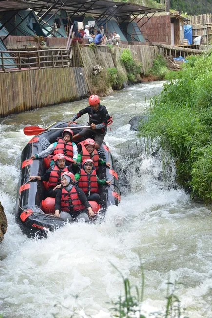 Rafting Pangalengan menaklukkan jeram sungai, menyegarkan, aman, dipandu instruktur profesional berpengalaman.